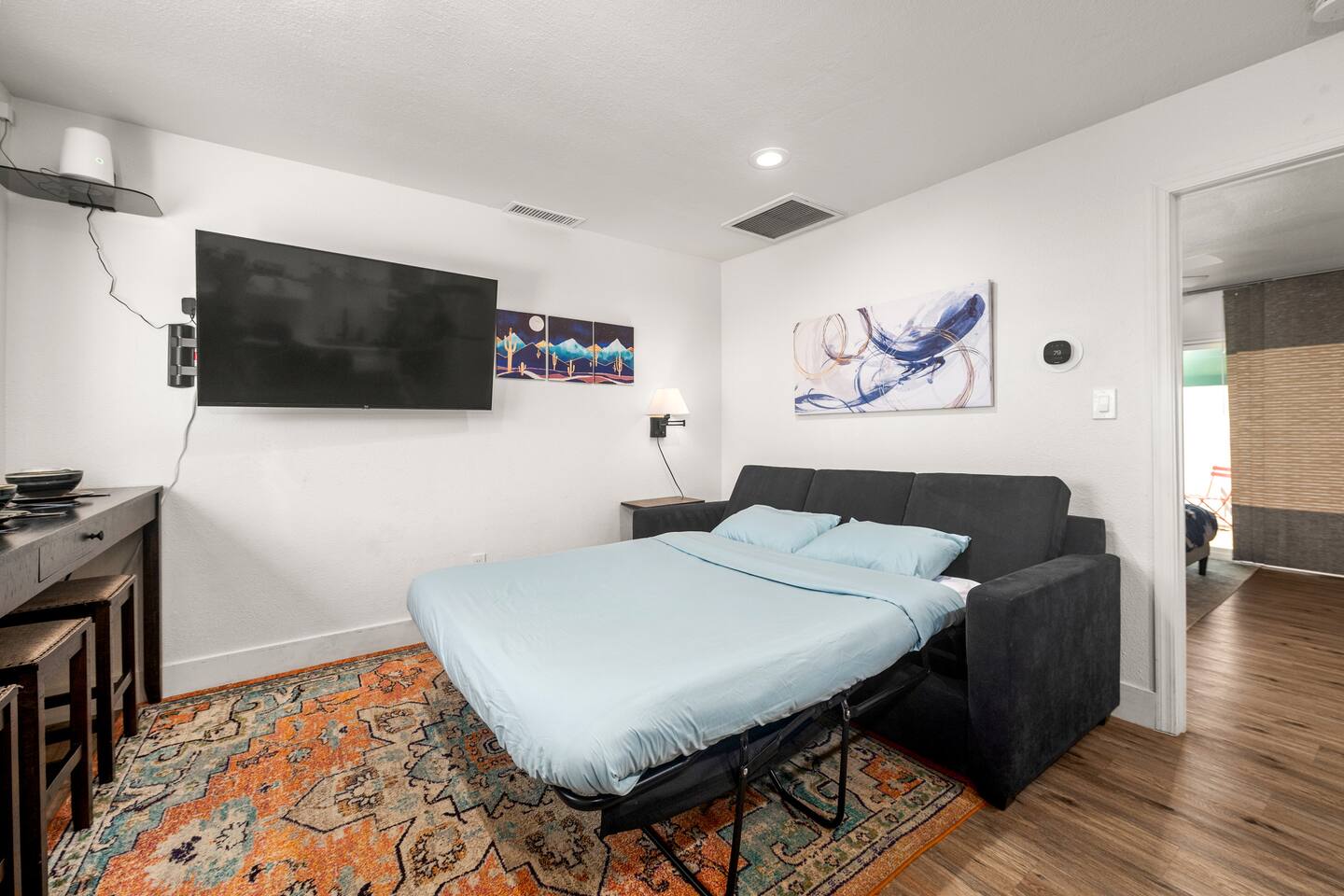 Enjoy a good night's rest on a comfy king-size bed, and easy access to everything from this perfectly located home base just a few blocks from downtown Phoenix. This well-designed space is both functional and comfortable whether you're coming for the next weekend game, or setting up a welcoming home away from home during an extended trip for work or school. Features free off street parking; walking, biking, scooter distance to downtown; and all the amenities of home.