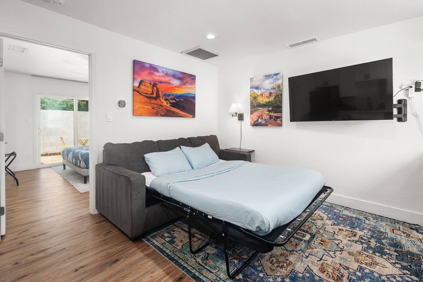 Enjoy a good night's rest on a comfy king-size bed, and easy access to everything from this perfectly located home base just a few blocks from downtown Phoenix. This well-designed space is both functional and comfortable whether you're coming for the next weekend game, or setting up a welcoming home away from home during an extended trip for work or school. Features free off street parking; walking, biking, scooter distance to downtown; and all the amenities of home.