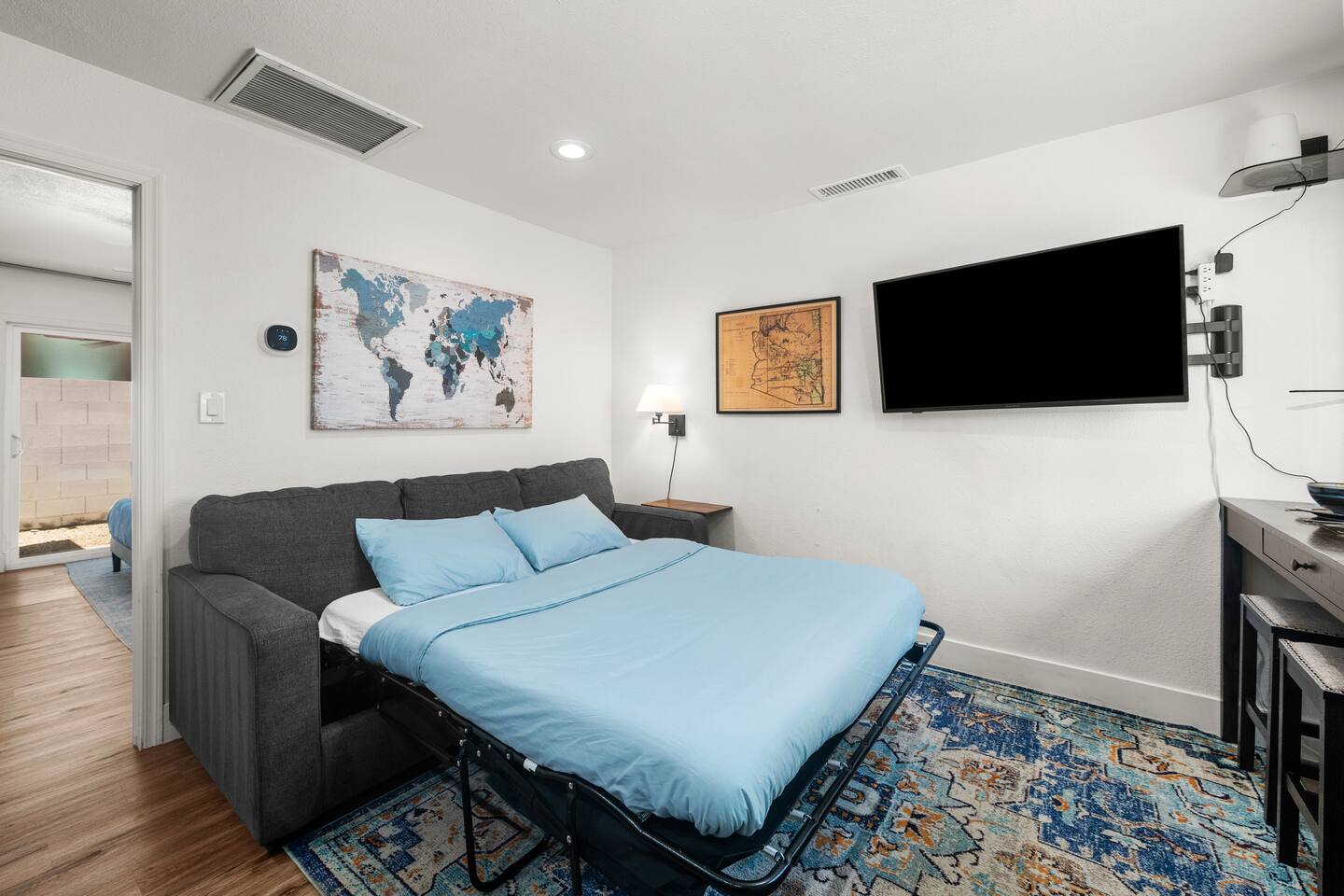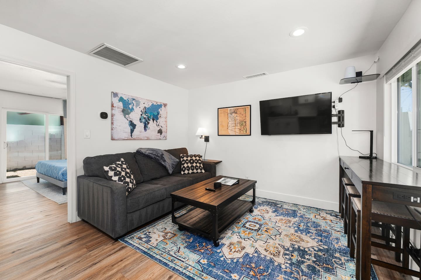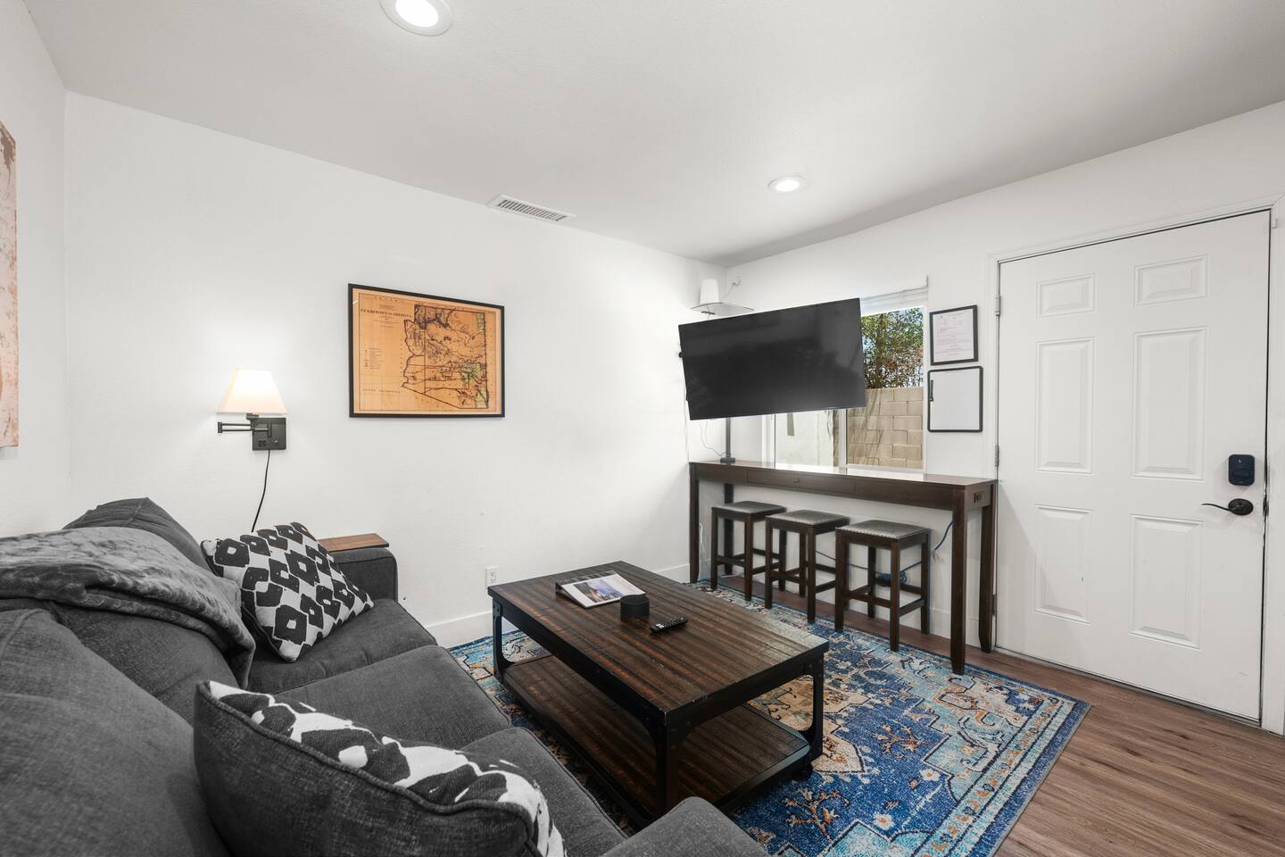 Enjoy a good night's rest on a comfy king-size bed, and easy access to everything from this perfectly located home base just a few blocks from downtown Phoenix. This well-designed space is both functional and comfortable whether you're coming for the next weekend game, or setting up a welcoming home away from home during an extended trip for work or school. Features free off street parking; walking, biking, scooter distance to downtown; and all the amenities of home.